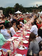 One section of the long banquet table on the bridge that spans the Mincio River for the Festa del Nodo d’Amore
