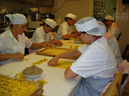 Women between the ages of 30 and 50, who were hired because they are most likely to have an expert but gentle touch, prepare their share of the 600,000 tortellini which will be served later the same day at the 2014 Festa del Nodo d”Amore (Festival of the Lovers’ Knot) in Valeggio sul Mincio, Veneto
